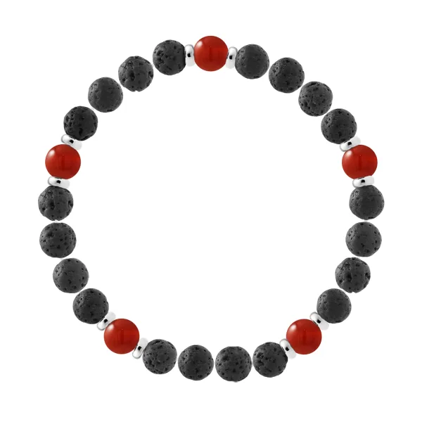 Armband | Natuurlijke Lava steen | Diameter 8 mm - LAVA STEEN - CORNALINE - 925 Sterling Zilveren Fittingen | HR® elastisch - Hoge Weerstand | Gemaakt in onze Franse Werkplaats | Geleverd met onze prestige doos en een garantie- en echtheidscertificaat
