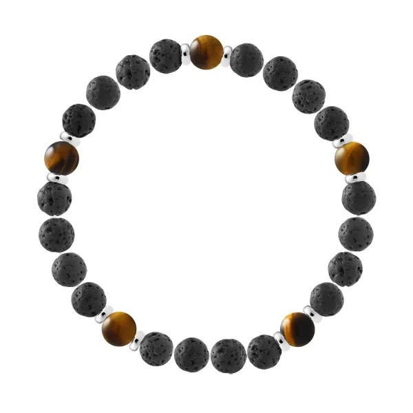 Armband | Natuurlijke Lava steen | Diameter 8 mm - LAVA STEEN - TIGER EYE STEEN - Sterling Zilver 925 Duizendsten Ferrules | HR® elastisch - Hoge Weerstand | Gefabriceerd in onze Franse Werkplaats | Geleverd met onze prestige doos en een certificaat van garantie & authenticiteit