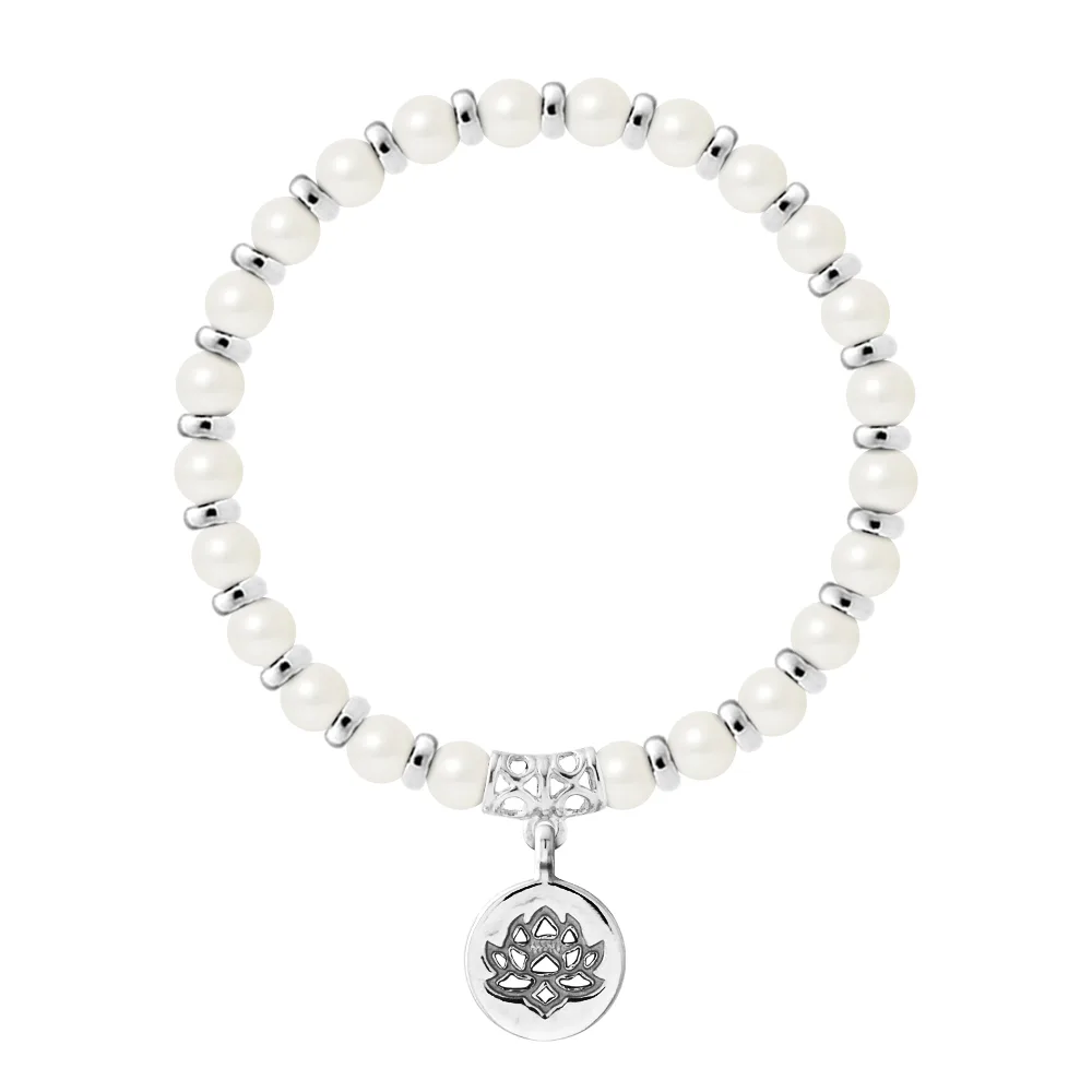 Armband Pure Gem | Zoetwaterkwaliteit AA - Natuurlijke witte kleur - Ferrules 'MAGIC LOTUS' Sterling Zilver 925 duizendsten | HR® elastisch - Hoge weerstand | Gefabriceerd in onze Franse werkplaats | Geleverd met onze prestige doos en een garantie- en echtheidscertificaat