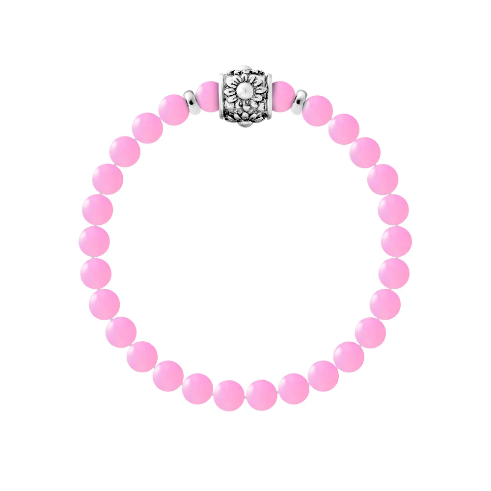 Armband Pure Gem | AGAAT ROZE | Ferrules 'HAPPY LOVE' Sterling Zilver 925 Duizendsten | HR® elastisch - Hoge Weerstand | Gemaakt in onze Franse Werkplaats | Geleverd met onze prestige doos en een certificaat van garantie & authenticiteit