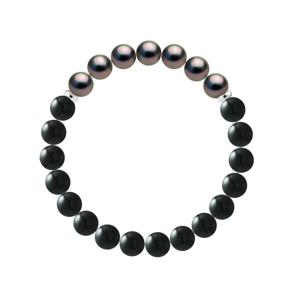 Armband - 7 Echte Tuin Tahitiaanse Cultuur Parels Ronde vorm 8-9 mm - ONYX ZWART VERBLUFFEND - Sterling Zilver 925 Duizendsten Ogen | HR® elastisch - Hoge Weerstand | Gefabriceerd in onze Franse Werkplaats | Geleverd met onze prestige doos en een garantie- en echtheidscertificaat
