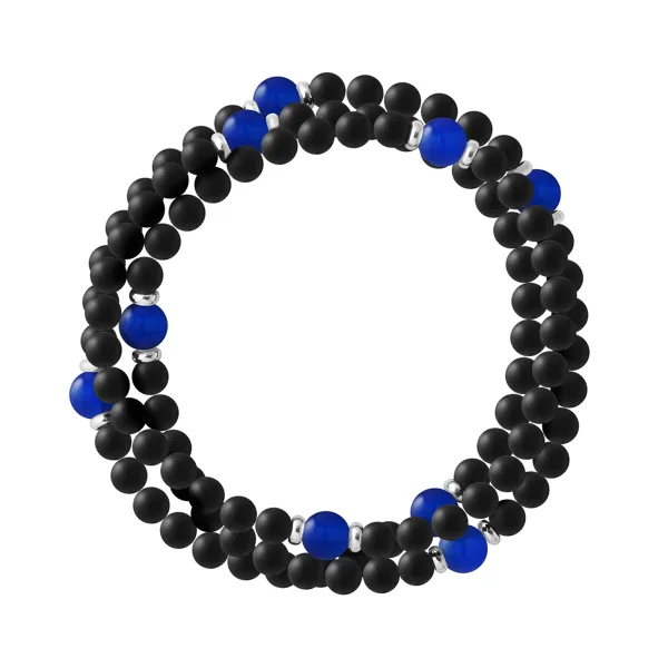 Armband Drievoudige Rij 9 Stenen | ZWARTE AGATE STEEN - BLAUWE AGATE | Sterling Zilver 925 Duizendsten Fittingen | HR® elastisch - Hoge Weerstand | Gefabriceerd in onze Franse Werkplaats | Geleverd met onze prestigesdoos en een garantie- & authenticiteitscertificaat