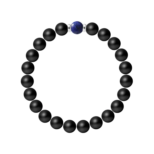 Armband - Zwarte Agaat - Lapis Lazuli / Blauwe Agaat Sterling Zilver 925 Duizendsten Ferrules | HR® elastisch - Hoge Weerstand | Gemaakt in onze Franse Werkplaats | Geleverd met onze prestige doos en een certificaat van garantie en echtheid