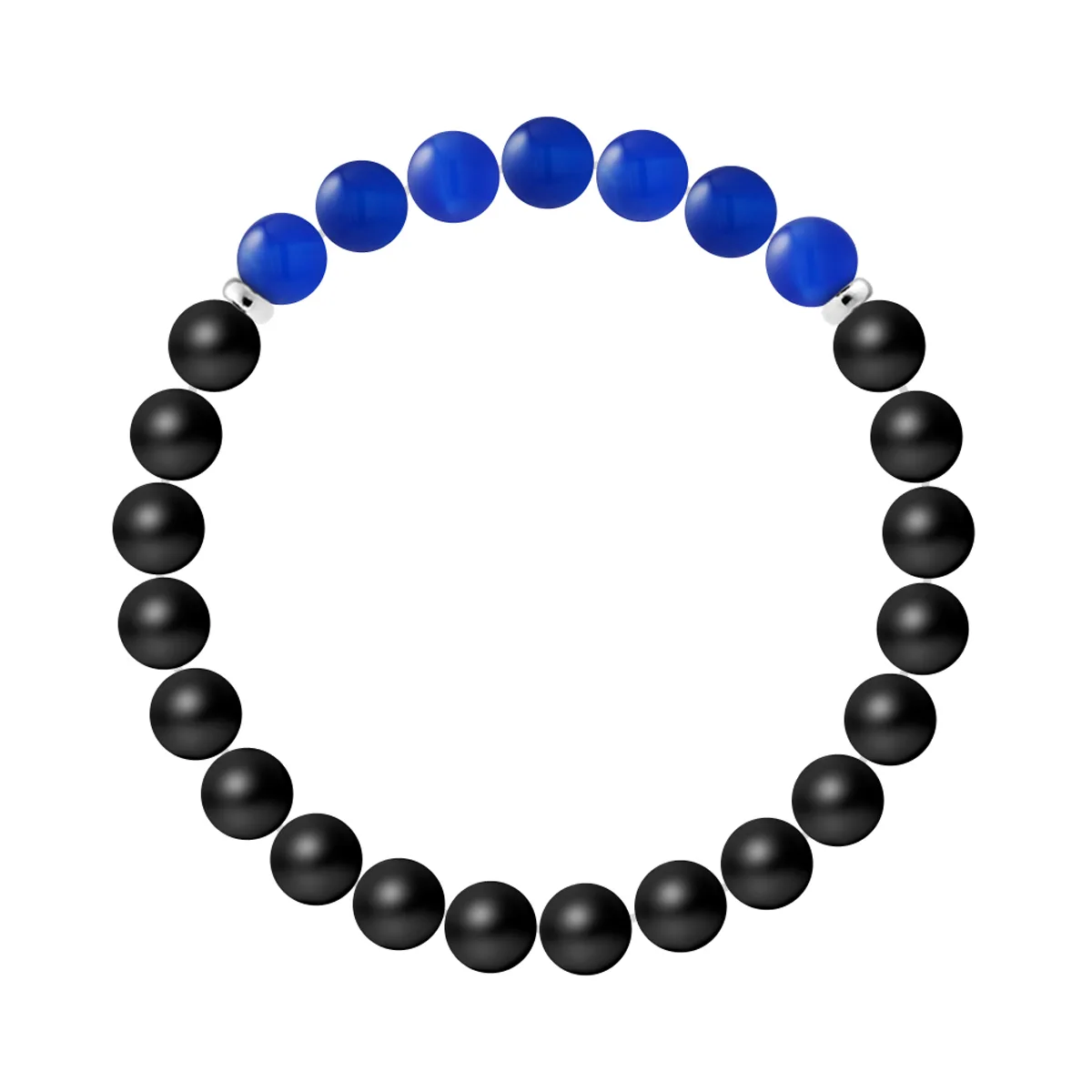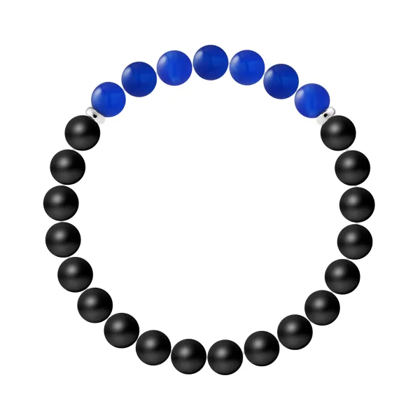 Armband 7 Stenen | ZWART AGATE STEEN - BLAUW AGATE | Sterling Zilver 925 Duizendsten Ferrules | HR® elastisch - Hoge Weerstand | Geproduceerd in onze Franse Werkplaats | Inclusief luxe doos en een certificaat van garantie & authenticiteit