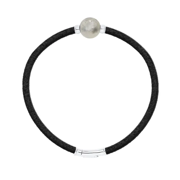 Armband Leer ZWART - KWARTS BLAUW - LUXE EDITIE - Sterling Zilver 925 Duizendsten Fittingen | HR® elastisch - Hoge Weerstand | Gemaakt in onze Franse Werkplaats | Geleverd met onze prestige doos en een garantie- en echtheidscertificaat