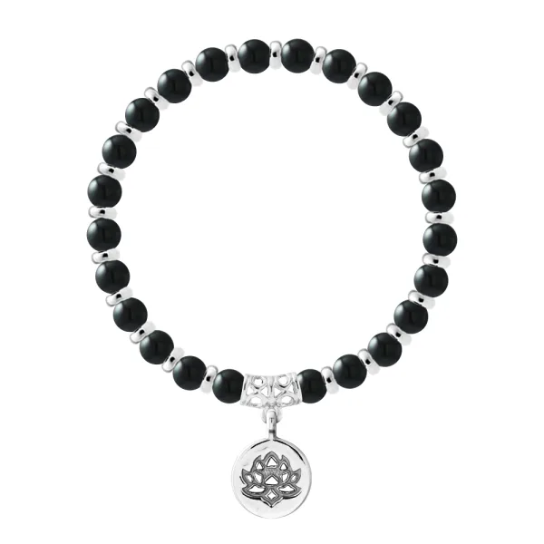Armband Pure Gem | ONYX ZWART - Ferrules 'MAGIC LOTUS' Sterling Zilver 925 Duizendsten | HR® elastisch - Hoge Weerstand | Gemaakt in onze Franse Werkplaats | Geleverd met onze prestige doos en een garantie- & echtheidscertificaat