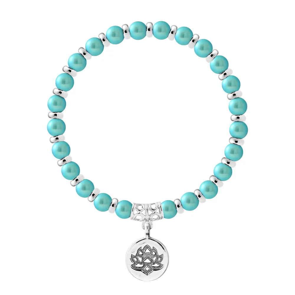 Armband Pure Gem | Zoetwater Kwaliteit AA - Kleur TURQUOISE BLAUW - Ferrules 'MAGIC LOTUS' Sterling Zilver 925 Duizendsten | HR® elastisch - Hoge Weerstand | Geproduceerd in onze Franse Werkplaats | Geleverd met onze prestigebox en een garantie- & echtheidscertificaat