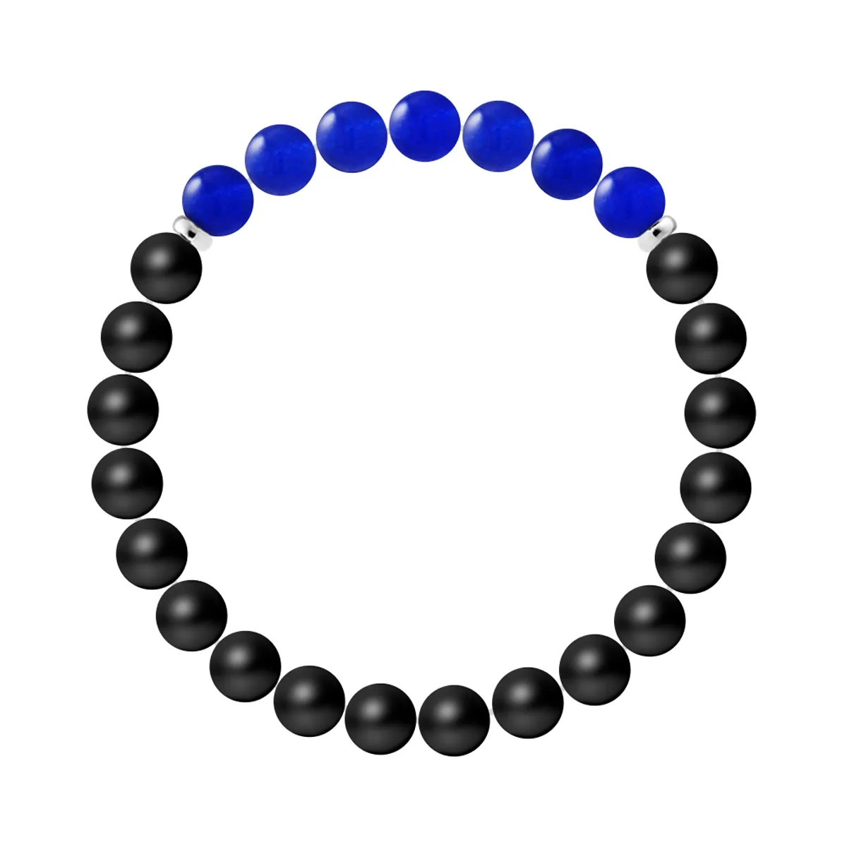 Armband 7 Steenen | ZWARTE AGAAT STEEN - CALCEDONIA | Sterling Zilver 925 Duizendsten Fittingen | HR® elastisch - Hoge Weerstand | Gefabriceerd in onze Franse Werkplaats | Geleverd met onze prestigedoos en een garantie- en echtheidscertificaat