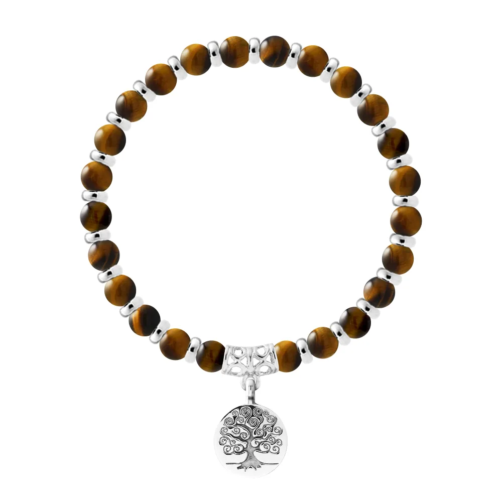 Armband Pure Gem | TIGER EYE STEEN - Ferrules 'MAGIC TREE' Sterling Zilver 925 Duizendsten | HR® elastisch - Hoge Weerstand | Gefabriceerd in onze Franse Werkplaats | Geliefd met onze prestige doos en een certificaat van garantie & authenticiteit