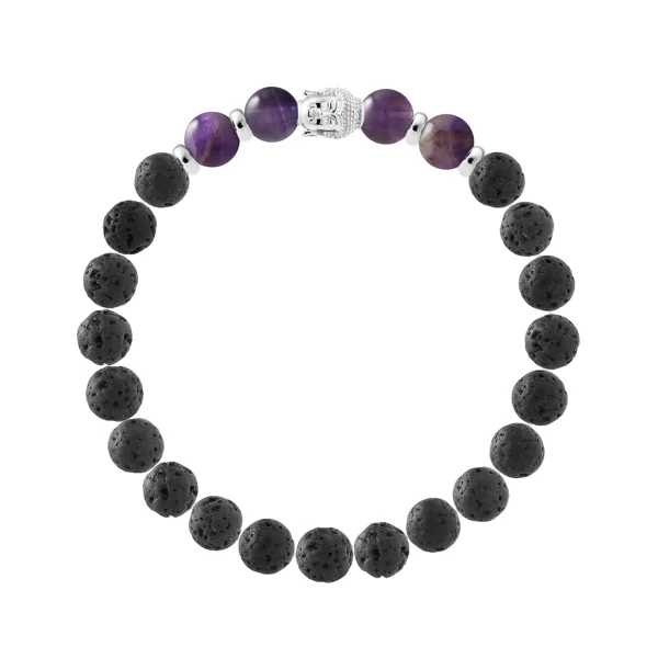 Armband | Natuurlijke Lava steen | Diameter 8 mm - LAVA STEEN - AMETHYSTE STEEN - Sterling Zilver 925 Duizendsten Eindhulzen | HR® elastisch - Hoge Weerstand | Gemaakt in onze Franse Werkplaats | Geleverd met onze prestigieuze doos en een certificaat van garantie en authenticiteit