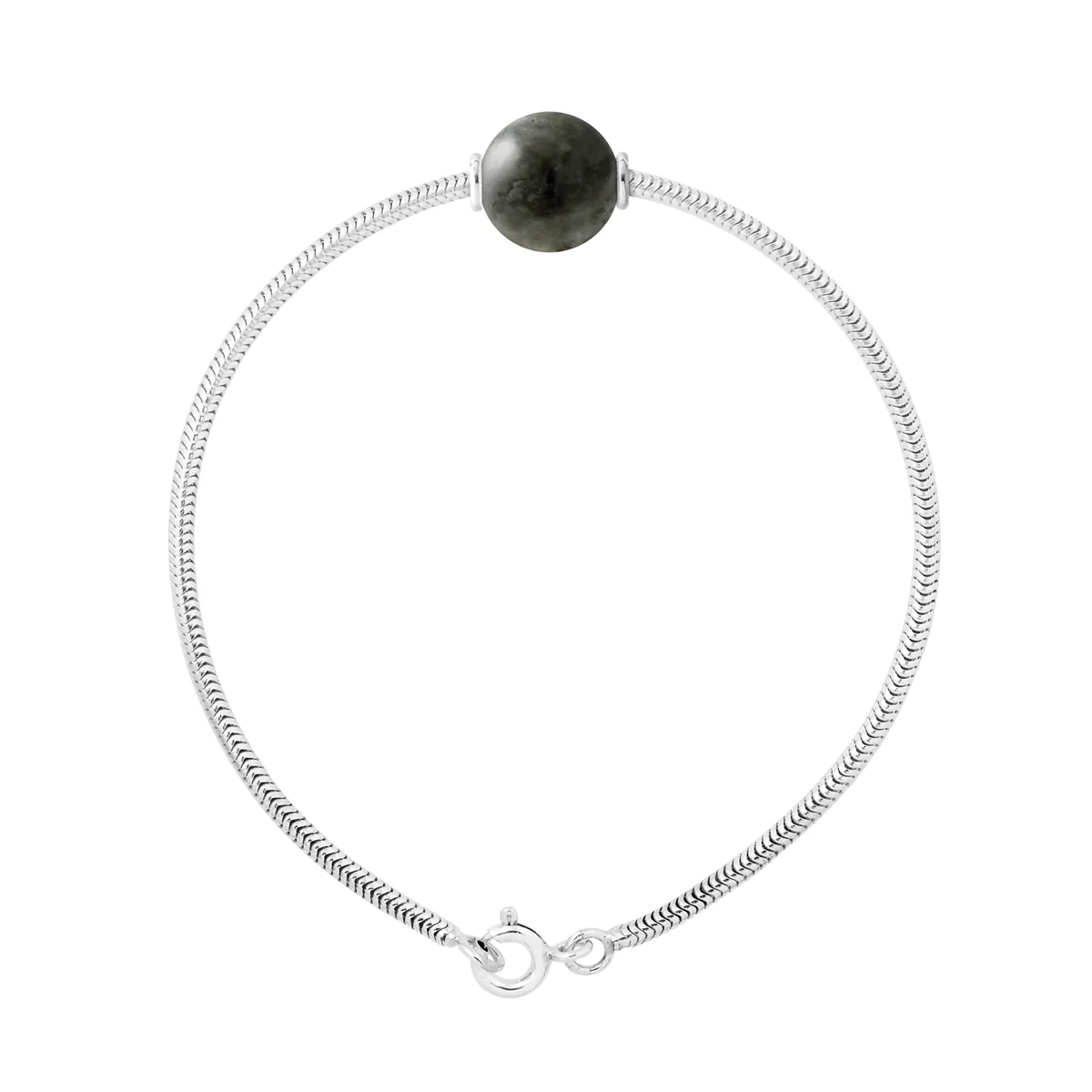 Armband Serpentine Mesh - Echte LABRADORIET GRIJS - Kleur GRIJS / ZWART Serpentine Mesh en Mouwen van Sterling Zilver 925 | HR® elastisch - Hoge Weerstand | Gemaakt in onze Franse Werkplaats | Geleverd met onze prestigebox en een certificaat van garantie en authenticiteit