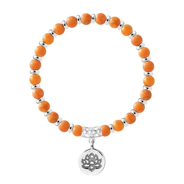 Armband Pure Gem | JASPIS STEEN ORANJE - Ferrules 'MAGISCHE LOTUS' Sterling Zilver 925 Duizendsten | HR® elastisch - Hoge Weerstand | Gemaakt in onze Franse Werkplaats | Geleverd met onze prestige doos en een certificaat van garantie & authenticiteit