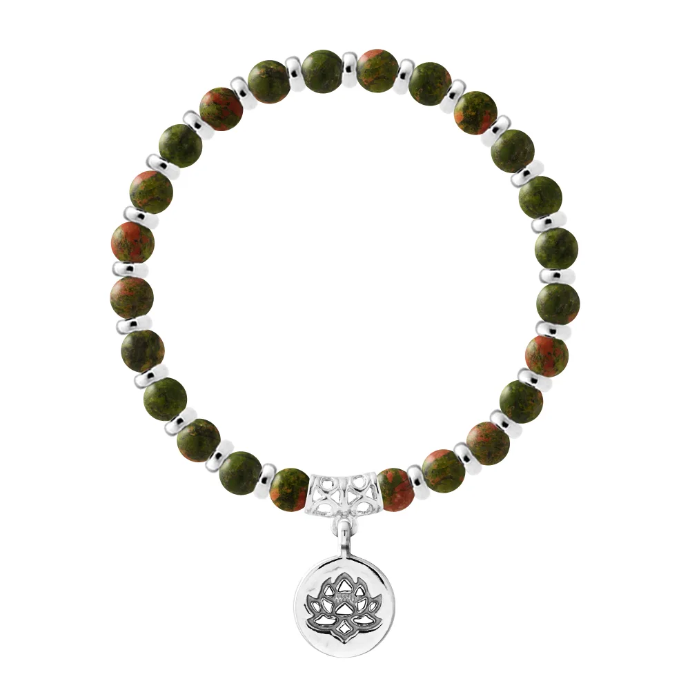 Armband Pure Gem | UNAKITE - Fittingen 'MAGISCHE LOTUS' Sterlingsilver 925 duidend | HR® elastisch - Hoge Weerstand | Vervaardigd in onze Franse Werkplaats | Geleverd met onze prestigekist en een certificaat van garantie & authenticiteit