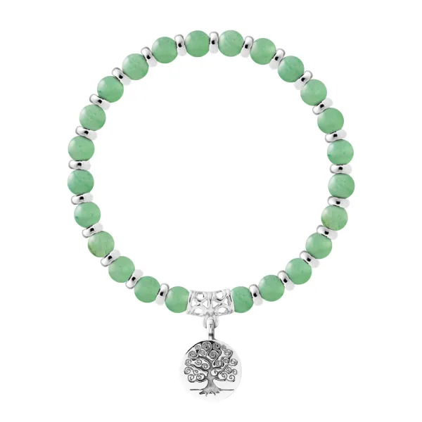 Armband Pure Gem | AVENTURIJN - Ferrules 'MAGISCHE BOOM' Sterling Zilver 925 Dertigduizendsten | HR® elastisch - Hoge Weerstand | Geproduceerd in onze Franse Werkplaats | Geleverd met onze prestigieuze doos en een garantie- en echtheidscertificaat