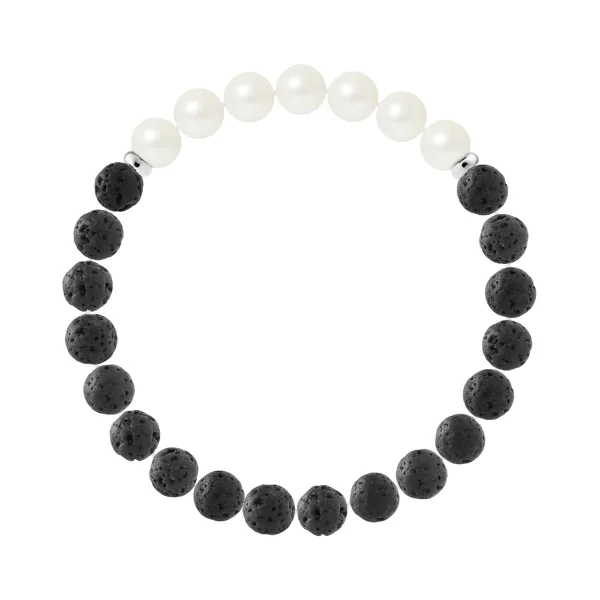 Armband | Natuurlijke Lava steen | Diameter 8 mm - LAVA STEEN - GECULTIVEERDE ZOUTWATER WITTE PAREL - Sterling Zilver 925 Duizendsten Ferrules | HR® elastisch - Hoge Weerstand | Gefabriceerd in onze Franse Werkplaats | Geleverd met onze prestige doos en een certificaat van garantie & authenticiteit