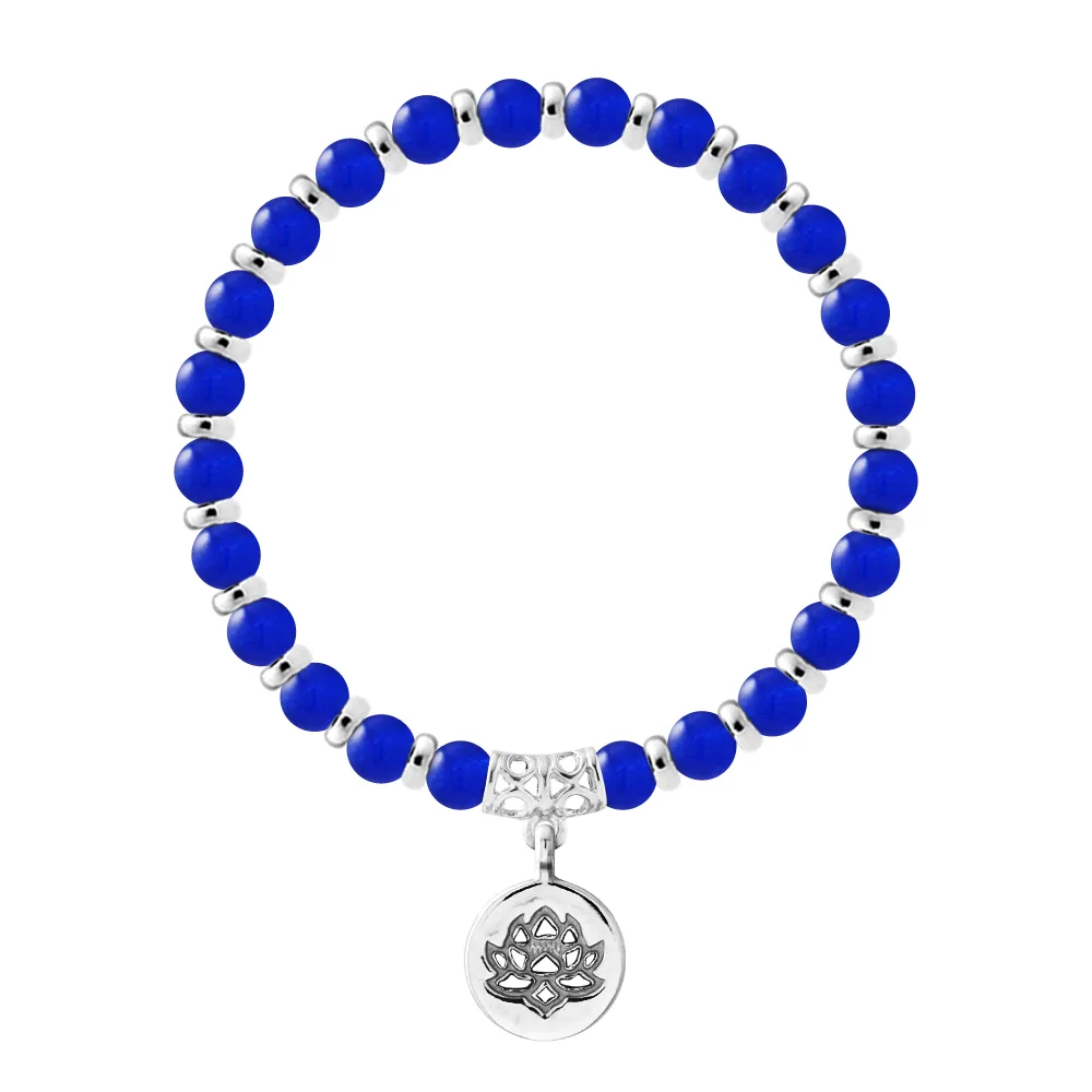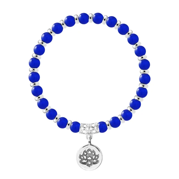Armband Pure Gem | Blauwe Calcedon - Ferrules 'MAGIC LOTUS' Sterling Zilver 925 Duizendsten | HR® elastisch - Hoge Weerstand | Gemaakt in onze Franse Workshop | Geleverd met onze prestigebox en een garantiemerk & echtheidscertificaat