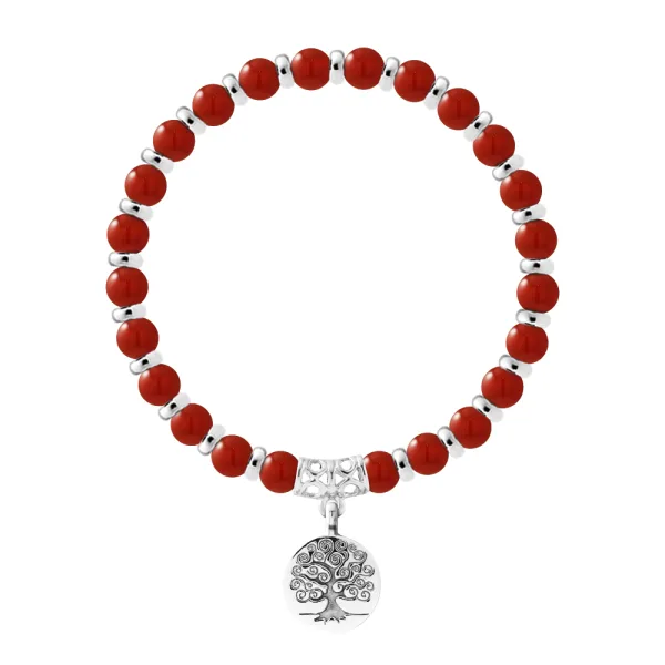 Armband Pure Gem | RODE CORNALINE - Ferrules 'MAGISCHE BOOM' Sterling Zilver 925 Duizendsten | HR® elastisch - Hoge Weerstand | Geproduceerd in onze Franse Werkplaats | Geleverd met onze prestigieuze doos en een certificaat van garantie & echtheid