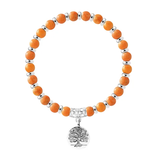 Armband Pure Gem | JASPISSTEEN ORANJE - Ferrules 'MAGIC TREE' Sterling Zilver 925 Duizendsten | HR® elastisch - Hoge Weerstand | Gemaakt in onze Franse Werkplaats | Geleverd met onze prestige doos en een certificaat van garantie & authenticiteit