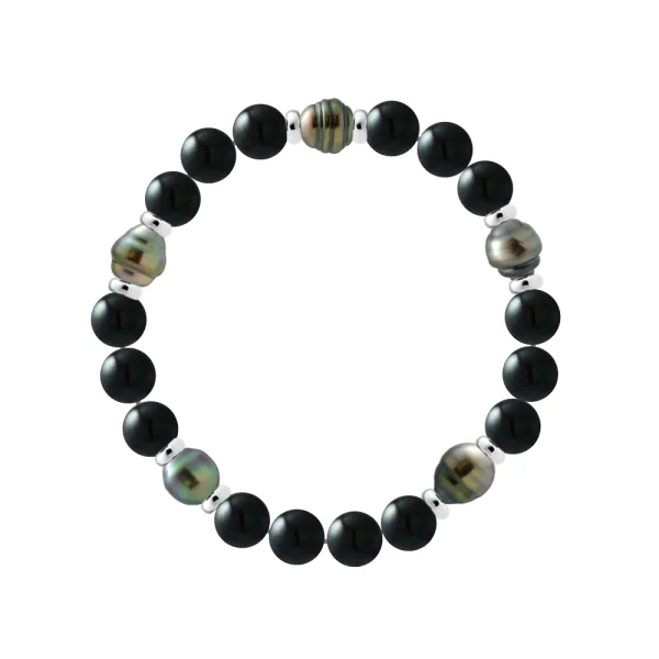 Armband - 5 Ware Tahitiaanse GeCultiveerde Parels Cirkelvormig 8-9 mm - ONYX ZWART WAANZINNIG - Sterlingsilveren 925 Duizendsten Fittingen | HR® elastisch - Hoge Weerstand | Gemaakt in onze Franse Werkplaats | Geleverd met onze prestige doos en een garantie- en echtheidscertificaat