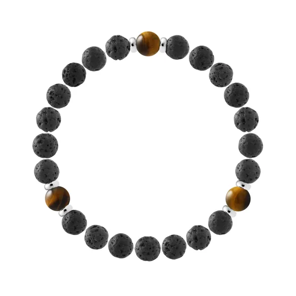 Armband | Natuurlijke lavastenen | Diameter 8 mm - LAVA STEEN - TIGER OOG STEEN - Sterling Zilver 925 Duizendsten Fittingen | HR® elastisch - Hoge Weerstand | Gefabriceerd in onze Franse Werkplaats | Geleverd met onze prestige doos en een certificaat van garantie & echtheid