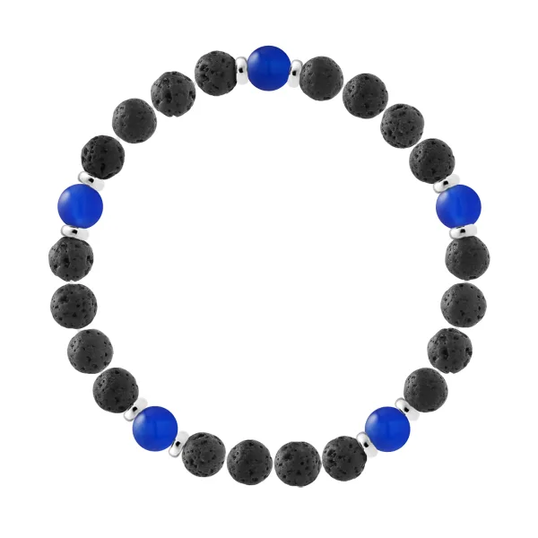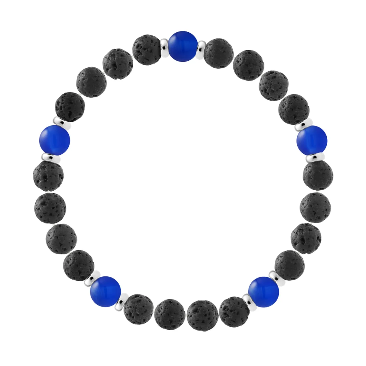 Armband | Natuurlijke Lava steen | Diameter 8 mm - LAVA STEEN - BLAUWE AGAAT - Sterling Zilver 925 Duizendsten Huls | HR® elastisch - Hoge Weerstand | Geproduceerd in onze Franse Werkplaats | Geleverd met onze prestige doos en een certificaat van garantie & authenticiteit