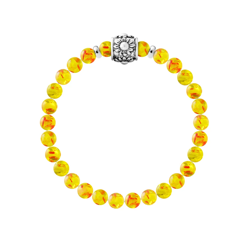 Armband Pure Gem | AMBER | Ferrules 'HAPPY LOVE' Sterlingsilver 925 Duizendsten | HR® elastisch - Hoge Weerstand | Geproduceerd in onze Franse Werkplaats | Geleverd met onze prestige doos en een certificaat van garantie & echtheid
