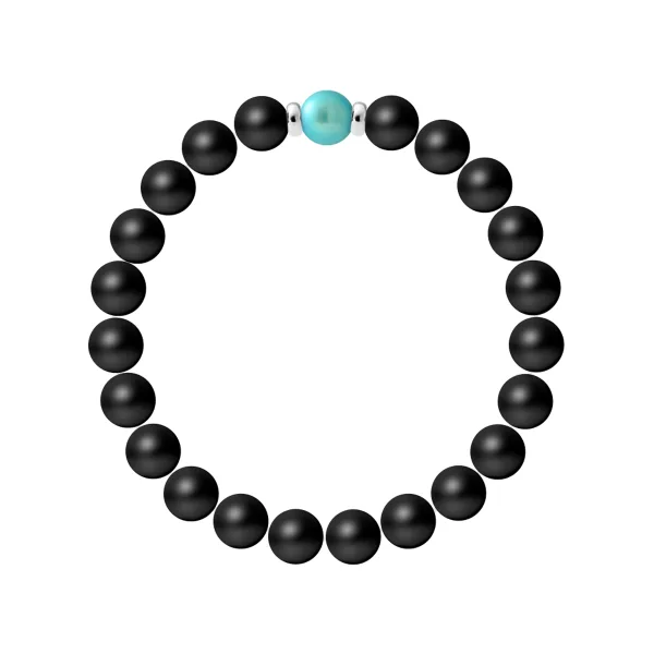 Armband - Zwarte Agaat - Verswaterkwaliteit AA - Kleur TURQUOIS BLAUW - Echte natuurlijke zoetwaterparel rond van 9-10 mm - Turquoise kleur - Sterling zilver 925/1000 onderdelen | HR® elastisch - Hoge weerstand | Gemaakt in onze Franse werkplaats | Geleverd met onze prestige doos en een certificaat van garantie & authenticiteit