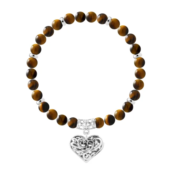Armband Pure Gem | TIGER OOG STEEN | Ferrules 'MIJN HART' Sterling Zilver 925 Duizendsten | HR® elastisch - Hoge Weerstand | Geproduceerd in onze Franse Werkplaats | Geleverd met onze prestige doos en een garantie- & echtheidscertificaat