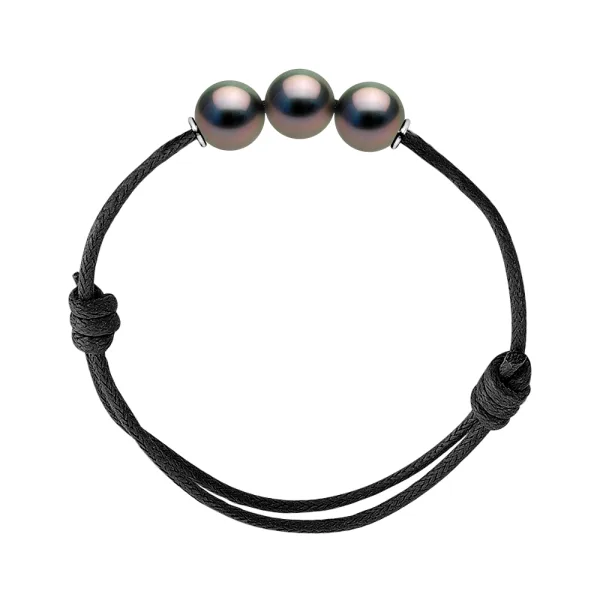 Armband Link - LUXE EDITIE - ZWARTE Kleur - schuifknopen - 3 Echte Tahitiaanse Cultured Pearls Rond van 9-10 mm - Mouwen van Sterling Zilver 925 | HR® elastisch - Hoge Weerstand | Vervaardigd in onze Franse Werkplaats | Genoeg geleverd met onze prestige doos en een garantie- en echtheidcertificaat