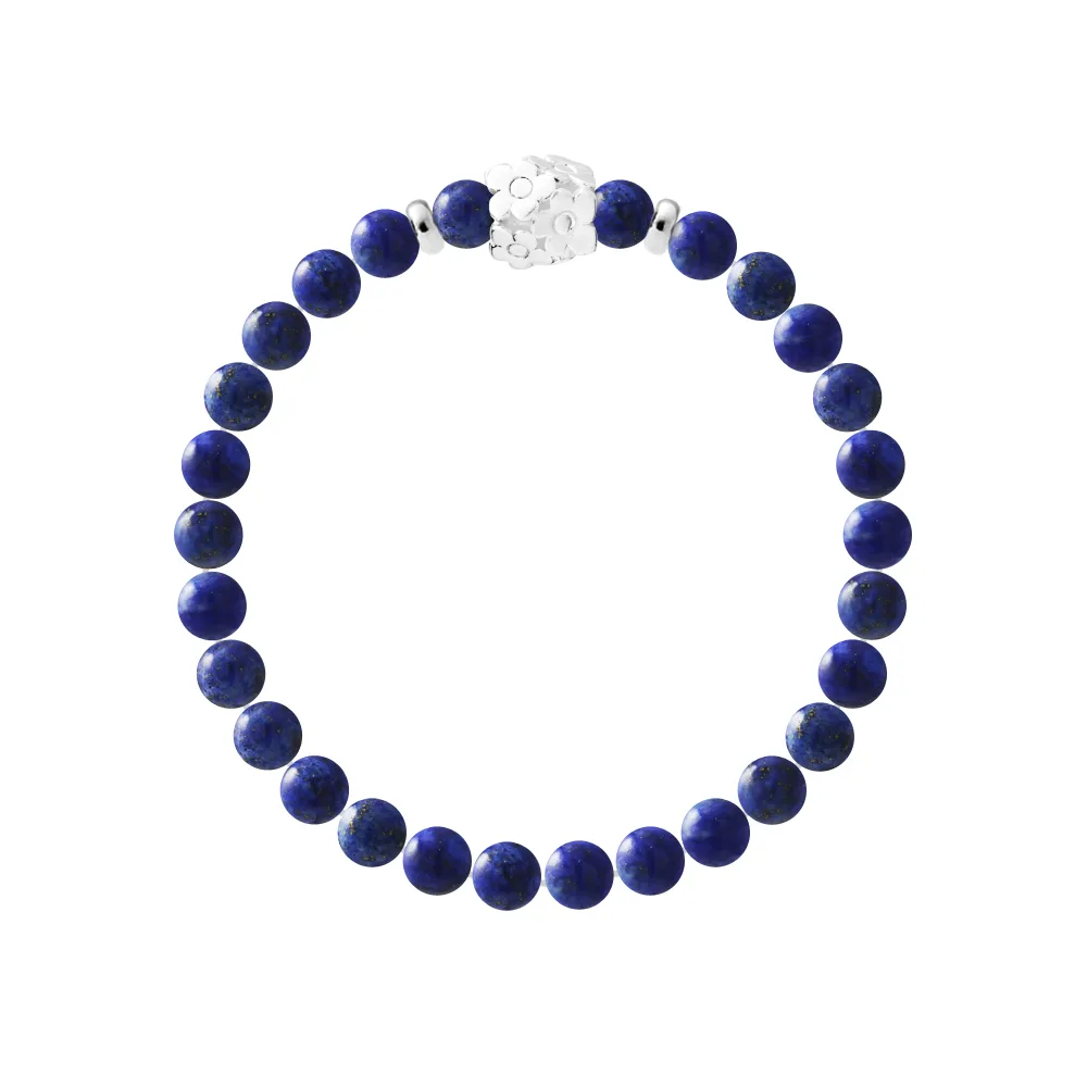 Armband Pure Gem | Lapis Lazuli | Ferrules 'FLOWER POWER' 'S' Sterling Zilver 925 Duizendsten | HR® elastisch - Hoge Weerstand | Gefabriceerd in onze Franse Werkplaats | Geleverd met onze prestige doos en een certificaat van garantie & authenticiteit