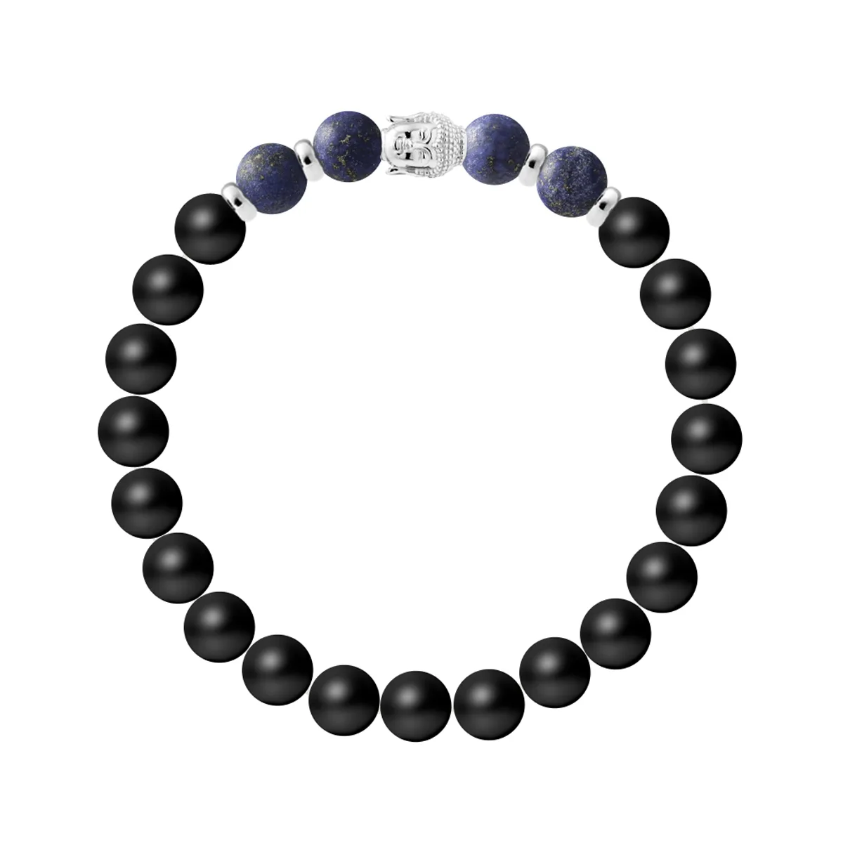 Armband BUDDHA - ZWARTE AGAASTEEN - CHRYSOCOLLA - Buddha Sterling Zilver 925 Duizendsten | HR® elastisch - Hoge Weerstand | Gemaakt in onze Franse Werkplaats | Geleverd in onze prestige doos met een garantie- en echtheidscertificaat