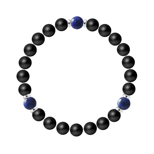 Armband 3 stenen - NATUURLIJKE MATTE ZWARTE AGATE | LAPIS LAZULI | Sterling Zilver 925 Duizendsten Fittingen | HR® rekbaar - Hoge Weerstand | Gefabriceerd in onze Franse Werkplaats | Geleverd met onze prestige doos en een garantie- & authenticiteitscertificaat