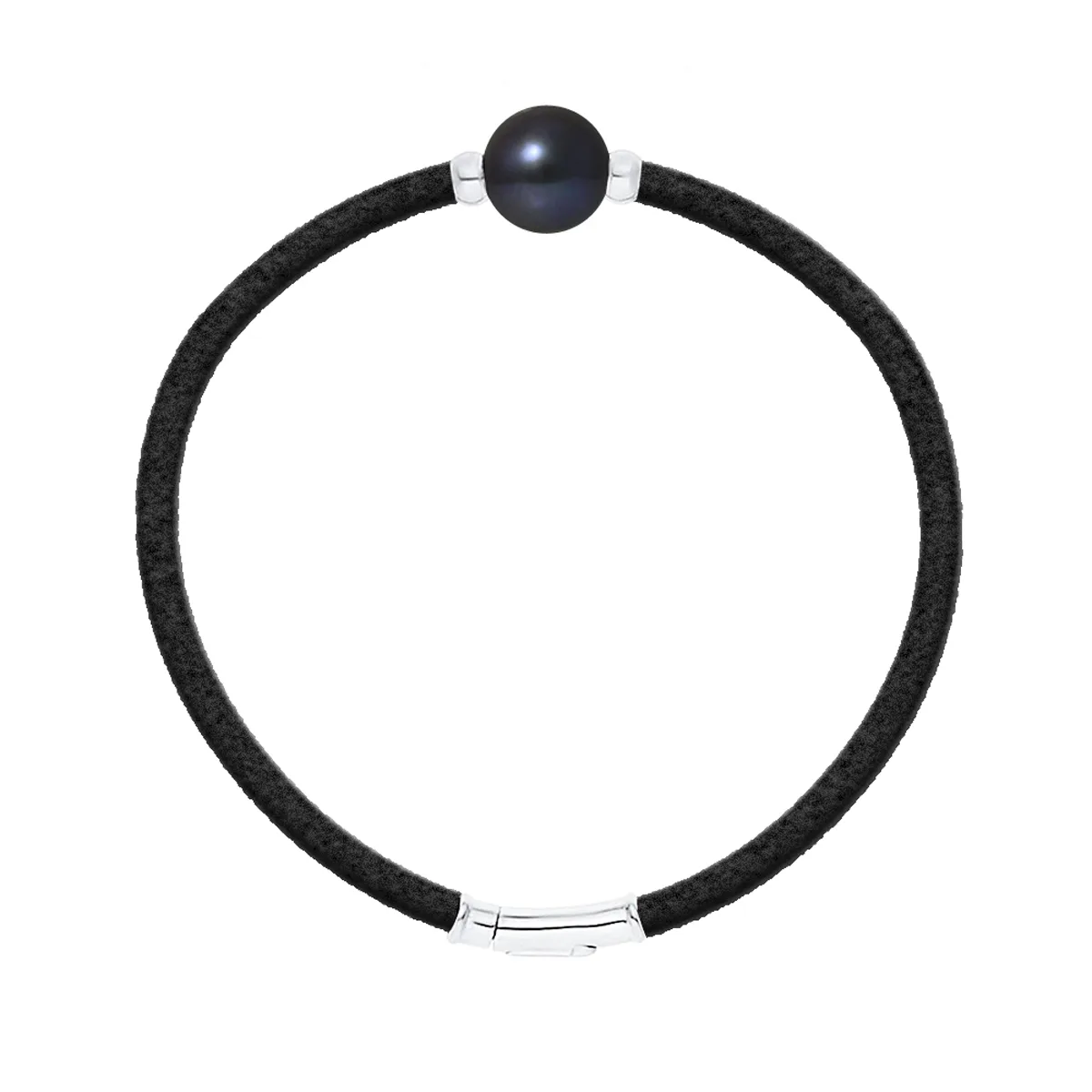 Armband Cuir - LUXE EDITIE - Zwarte Kleur - Echte Natuurlijke Zoetwaterparel Rond 10-11 mm - Zwarte kleur - Sterling Zilver 925 Duizendsten Fittingen | HR® elastisch - Hoge Weerstand | Vervaardigd in onze Franse Werkplaats | Geleverd met onze prestige doos en een garantie- en echtheidscertificaat