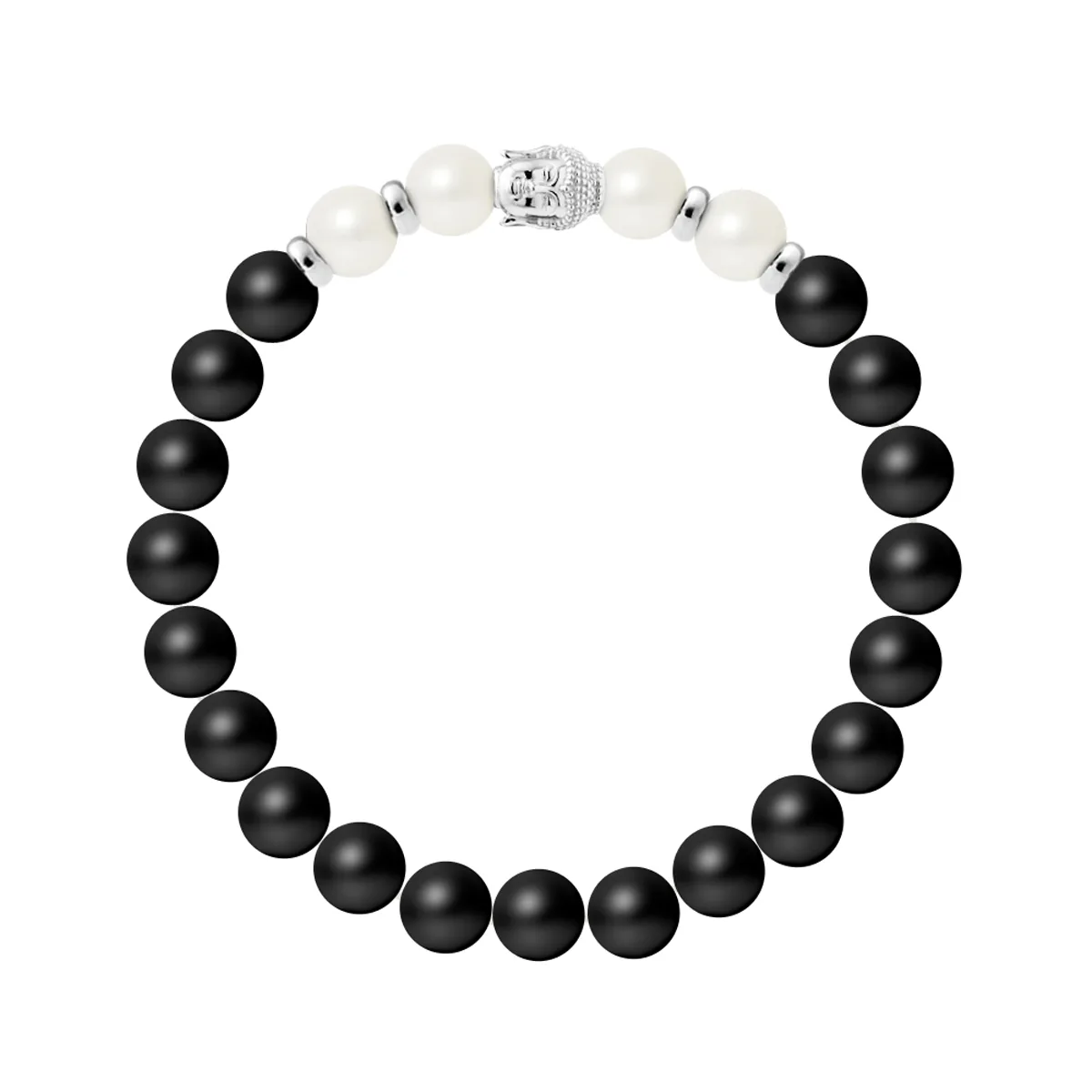 Armband BUDDHA - ZWARTE AGAAT STEEN - WITTE ZOETWATERPAREL - Buddha Sterling Zilver 925 Duizendsten | HR® elastisch - Hoge Weerstand | Gefabriceerd in onze Franse Werkplaats | Geleverd met onze prestige doos en een certificaat van garantie & authenticiteit