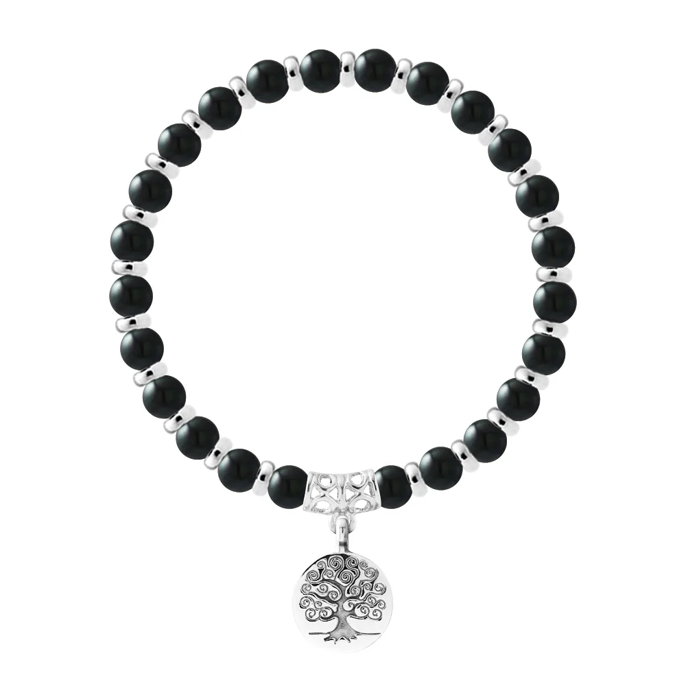 Armband Pure Gem | ONYX ZWART - Ferrules 'MAGIC TREE' Sterling Zilver 925 Duizendsten | HR® elastisch - Hoge Weerstand | Gemaakt in onze Franse Werkplaats | Wordt geleverd met onze prestigestijl en een certificaat van garantie & authenticiteit