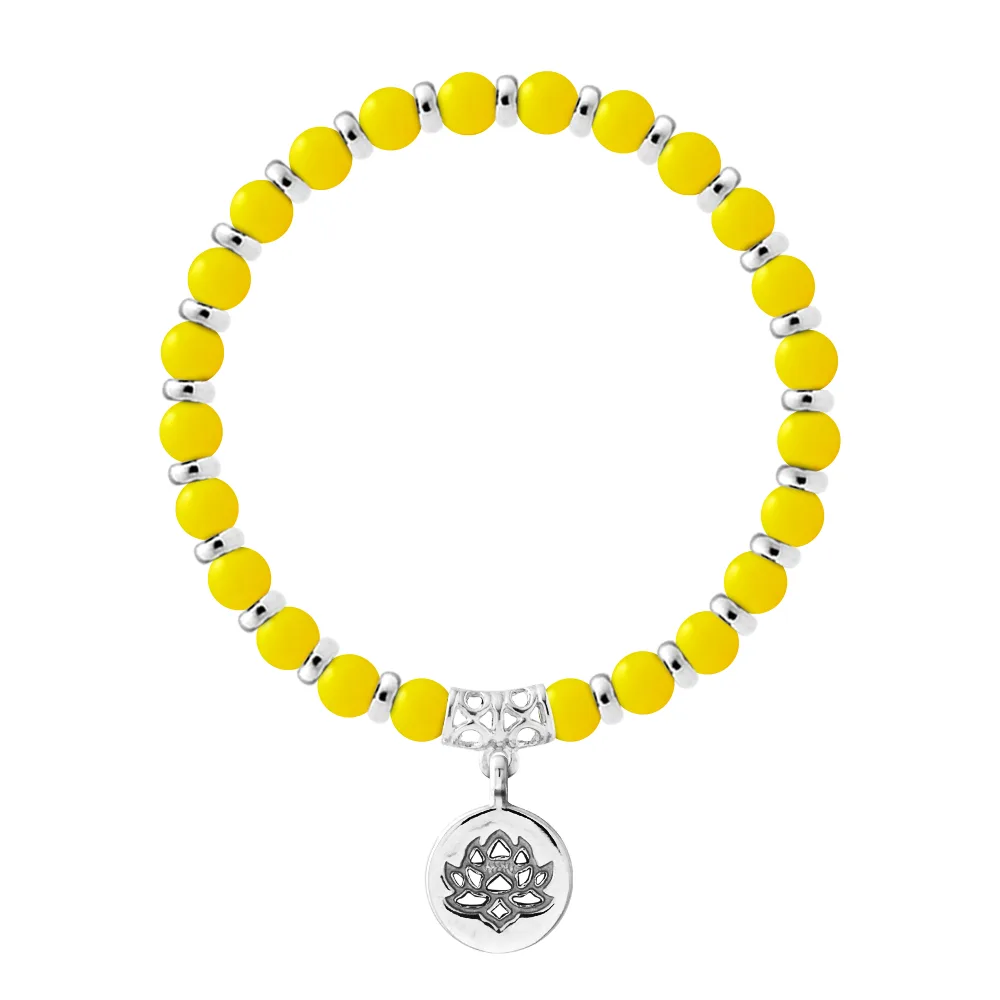 Armband Pure Gem | GELE AGAAT - 'MAGIC LOTUS' Sterling Zilver 925 Duizendsten | HR® elastisch - Hoge Weerstand | Gemaakt in onze Franse Werkplaats | Geleverd met onze prestige doos en een garantie- en echtheidscertificaat