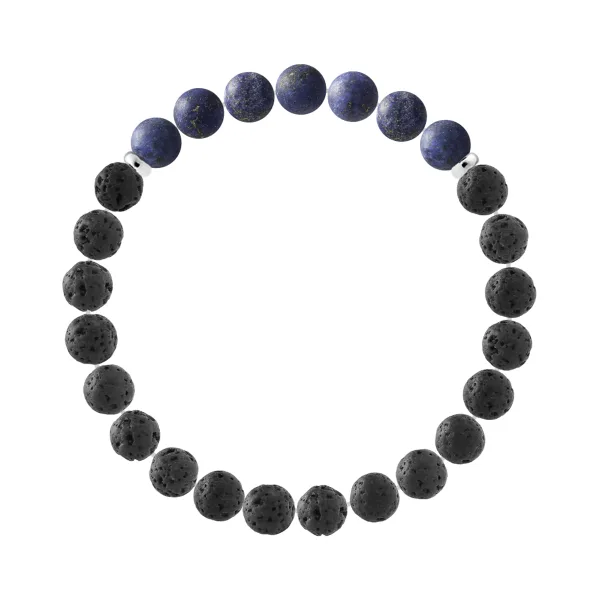Armband | Natuurlijke Lava stenen | Diameter 8 mm - LAVA STEEN - CHRYSOCOLLA - Verzilverde 925 Duizendsten Fittingen | HR® elastisch - Hoge Weerstand | Gefabriceerd in onze Franse Werkplaats | Geleverd met onze prestige doos en een certificaat van garantie & authenticiteit