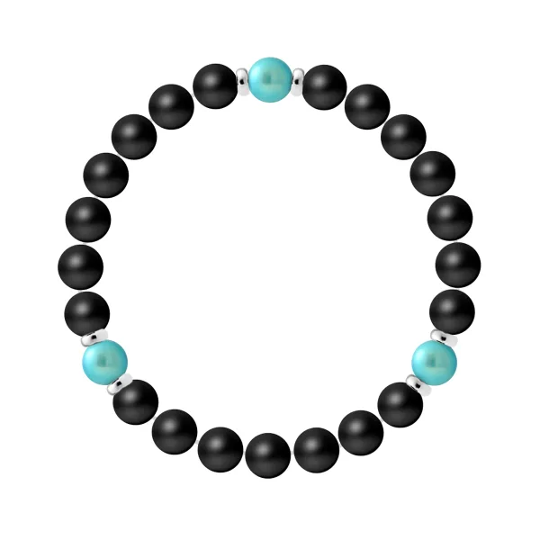 Armband 3 Stenen - NATUURLIJK MATZWART AGAAT | GECULTIVEERDE ZOETWATERPAREL TURQUOISE | Sterling Zilver 925 Duizendsten Fittingen | HR® elastisch - Hoge Weerstand | Geproduceerd in onze Franse Werkplaats | Geleverd met onze prestige doos en een certificaat van garantie & authenticiteit