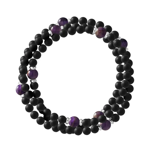 Armband Triple Row 9 Stenen | ZWART AGAATSTEEN - AMETHYSTSTEEN | Sterling Zilver 925 Duizendsten Ferrules | HR® elastisch - Hoge Weerstand | Gemaakt in onze Franse Werkplaats | Geleverd met onze prestige doos en een certificaat van garantie en authenticiteit