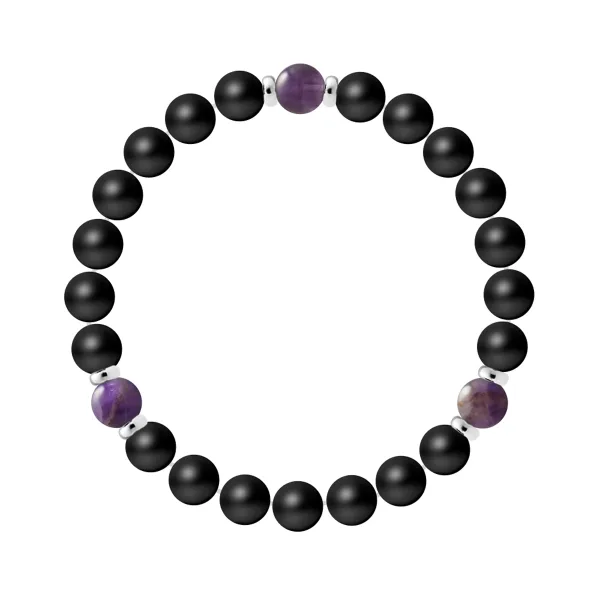 Armband 3 Stenen - NATUURLIJKE MAT ZWARTE AGAAT | AMETHYSTE STEEN | Sterling Zilver 925 Duizendsten Fittingen | HR® elastisch - Hoge Weerstand | Gefabriceerd in onze Franse Werkplaats | Levering met onze prestige doos en een certificaat van garantie & authenticiteit
