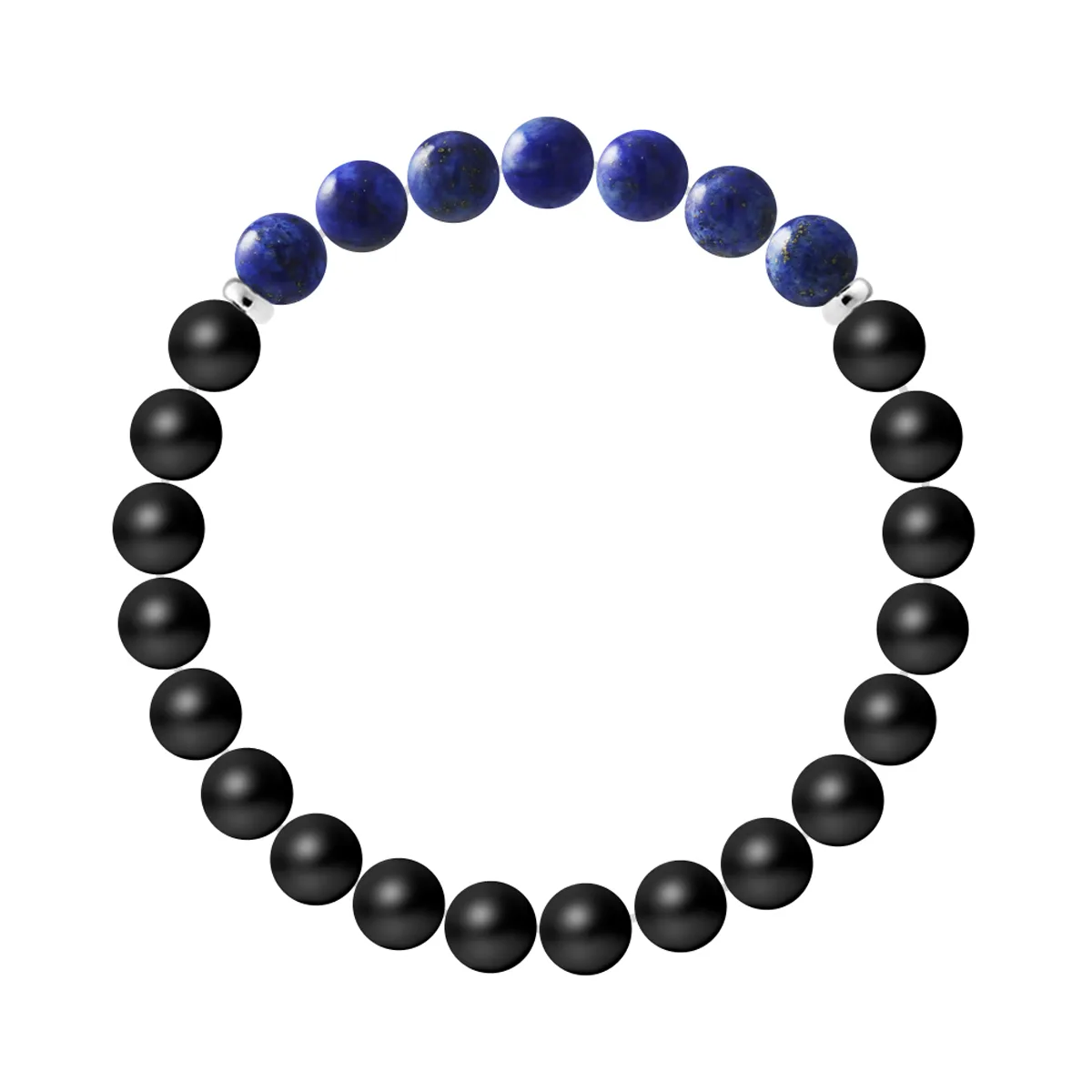 Armband 7 Stenen | ZWARTE AGAASTEN - LAPIS LAZULI | Sterling Zilver 925 Duizendsten Fittingen | HR® elastisch - Hoge Weerstand | Geproduceerd in onze Franse Werkplaats | Geleverd met onze prestige doos en een certificaat van garantie & authenticiteit