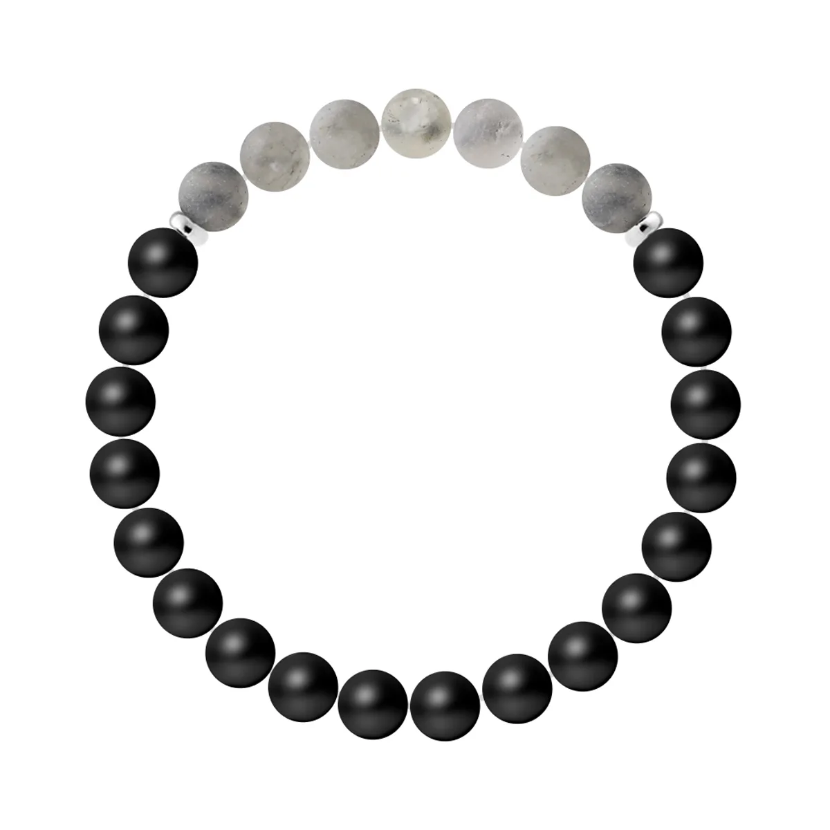 Armband 7 Stenen | ZWARTE AGAAT STEEN - KWARTS | Sterling Zilver 925 Duizendsten Kappen | HR® elastisch - Hoge Weerstand | Gefabriceerd in onze Franse Werkplaats | Geleverd met onze prestigieuze doos en een certificaat van garantie en authenticiteit