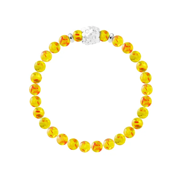 Armband Pure Gem | AMBER | Ferrules 'FLOWER POWER' 'S' Sterling Zilver 925 Duizendsten | HR® elastisch - Hoge Weerstand | Gefabriceerd in onze Franse Werkplaats | Geleverd met onze prestige doos en een certificaat van garantie & authenticiteit