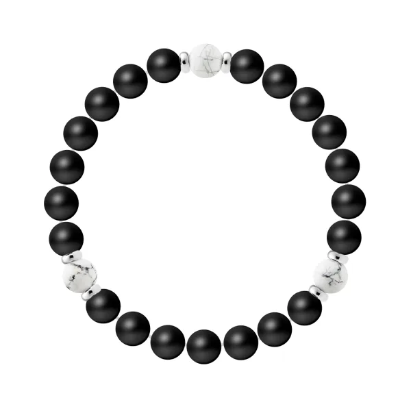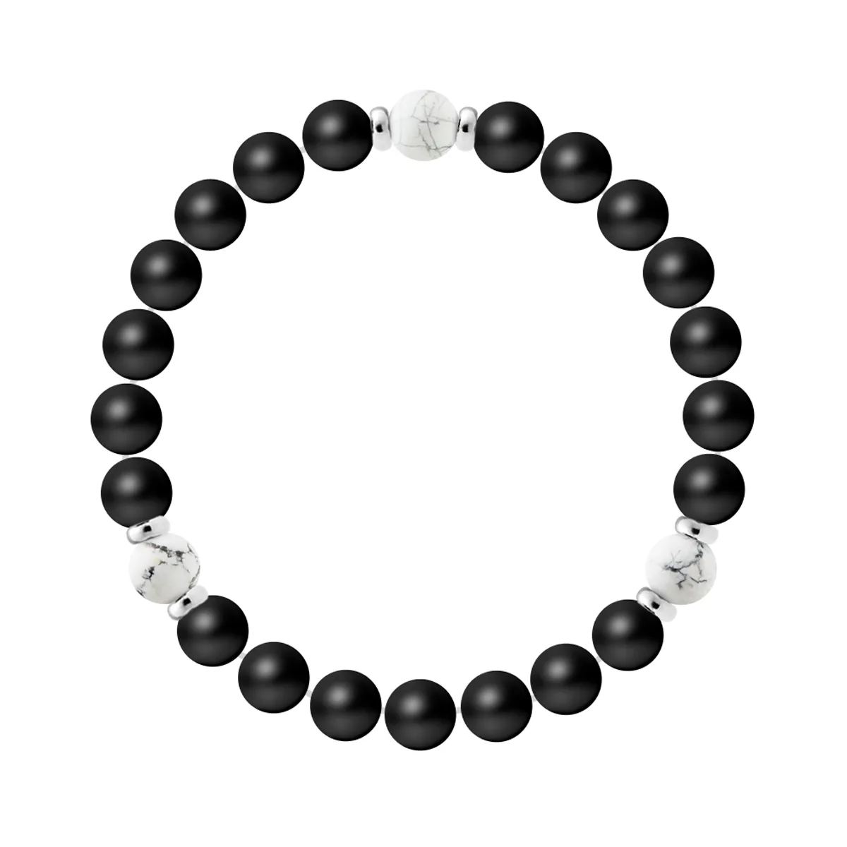 Armband met 3 stenen - NATUURLIJK MAT ZWARTE AGAAT | HOWLIET | Sterling Zilver 925 Duizendsten Ferrules | HR® elastisch - Hoge Weerstand | Gefabriceerd in onze Franse Werkplaats | Geleverd met onze prestigebox en een certificaat van garantie en authenticiteit