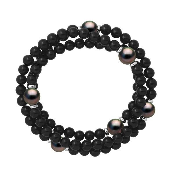 Armband Triple Row - ONYX ZWART PERSOONLIJK - 6 Echte Tahitiaanse Cultuurparels Rond 8-9 mm - Sterling Zilver 925 Duizendsten Fittingen | HR® elastisch - Hoge Weerstand | Gefabriceerd in onze Franse Werkplaats | Geleverd met onze prestige doos en een garantie- en authenticiteitscertificaat