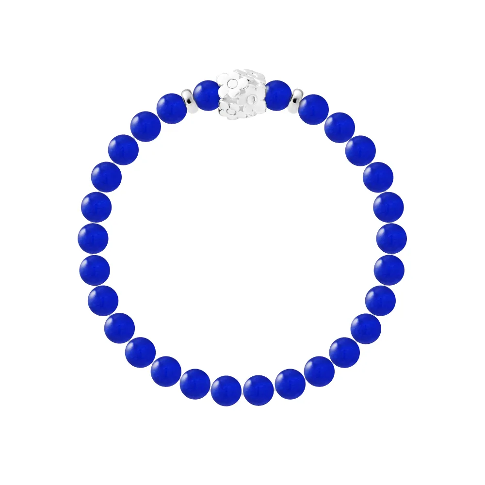 Armband Pure Gem | Blauwe Calcedonia | Koppelingen 'FLOWER POWER' 'S' Sterling Zilver 925 Duizendsten | HR® elastisch - Hoge Weerstand | Gefabriceerd in onze Franse Werkplaats | Geleverd met onze prestige box en een garantie- en echtheidcertificaat