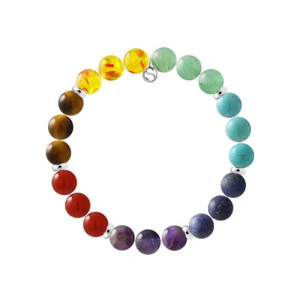 Armband - 7 Chakra's - Aventurijn + Turquoise + Blauwe Chrysocolla + Amethist + Rode Carneool + Amber + Tijgeroog - Ferrules + BRELOQUE 'S' Sterling Zilver 925 Duizendsten | HR® elastisch - Hoge Weerstand | Gemaakt in onze Franse Workshop | Geleverd met onze prestige doos en een garantie- en echtheidcertificaat