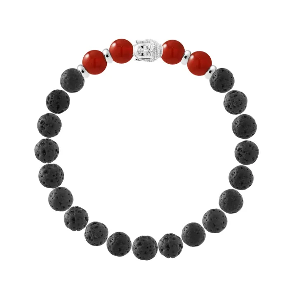 Armband | Natuurlijke Lava stenen | Diameter 8 mm - LAVA STEEN - CORNALINE - Sterling Zilver 925 Duizendsten Ferrules | HR® elastisch - Hoge Weerstand | Gemaakt in onze Franse Werkplaats | Geleverd met onze prestige doos en een certificaat van garantie & authenticiteit