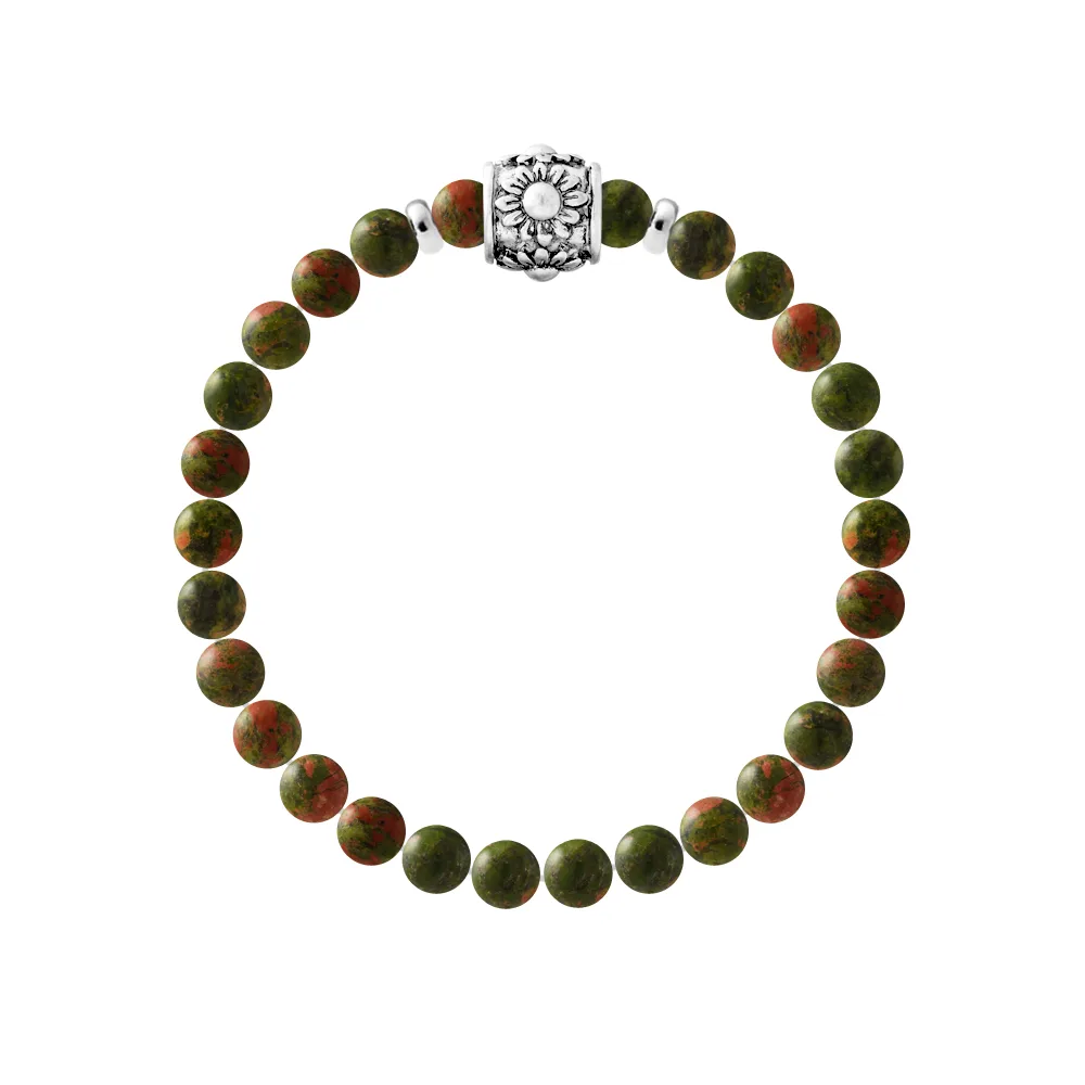 Armband Pure Gem | UNAKITE | Ferrules 'HAPPY LOVE' Sterling Zilver 925 Duizendsten | HR® elastisch - Hoge Weerstand | Gemaakt in onze Franse Werkplaats | Geleverd met onze prestige doos en een certificaat van garantie & authenticiteit