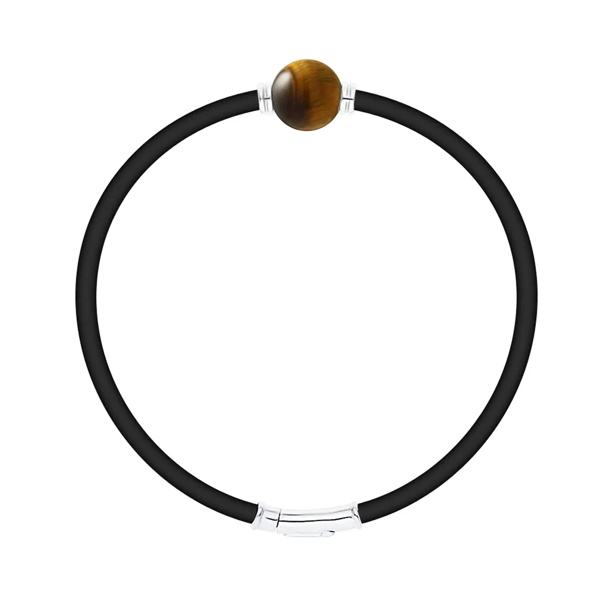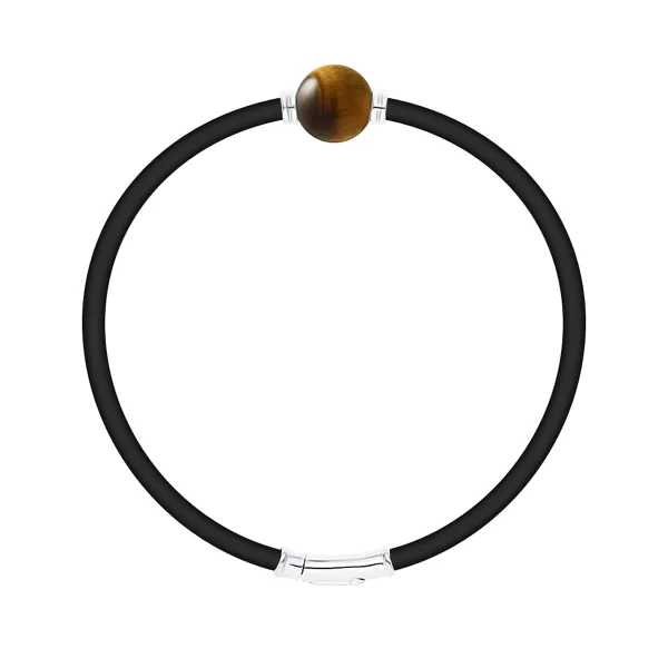 Armband Neopreen - TIGER EYE STEEN - LUXE EDITIE - Sterling Zilver 925 Duizendsten Ferrules | HR® elastisch - Hoge Weerstand | Gemaakt in onze Franse Werkplaats | Geleverd in onze prestige doos met een garantie- en echtheidscertificaat